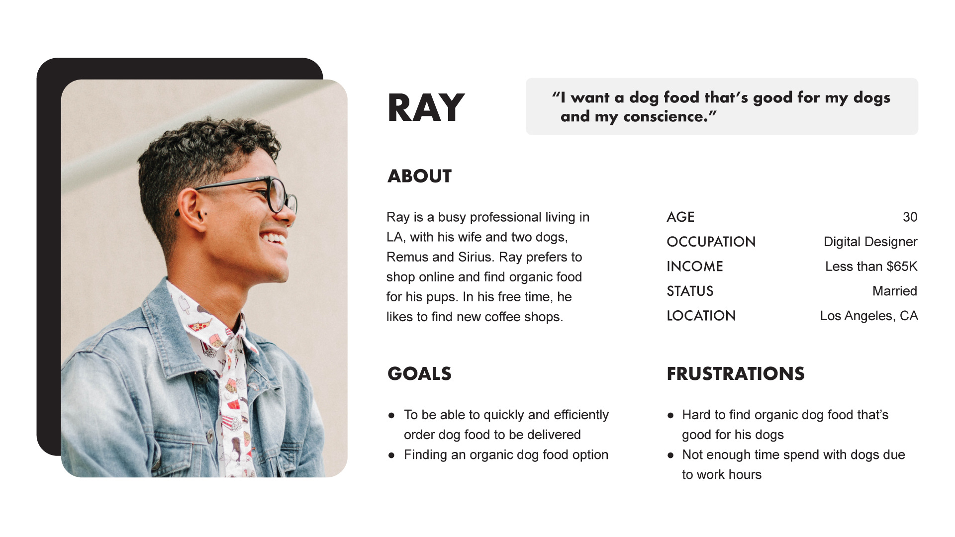 PROBLEM STATEMENT: Ray is a busy dog owner who needs a website that can successfully and easily deliver dog food because he needs bulk food for his dogs.